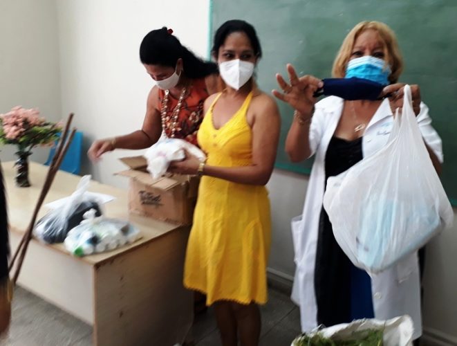 “Nos ha llegado como el anillo al dedo”, les asegura Lourdes Montenegro Suárez, secretaria del Buró Sindical del policlínico, y detalla que esos insumos les son de gran utilidad, porque escasean en estos días de estrecheces económicas, “porque los productos alimenticios ayudarán a mejorar la calidad del menú que brindan a médicos, enfermeros, técnicos.., que extienden sus jornadas laborales en la institución; los jabones y nasobucos fortalecerán la protección de quienes están trabajando en zona roja con enfermos y sospechosos y los productos de aseo fortalecerán la higiene”.
