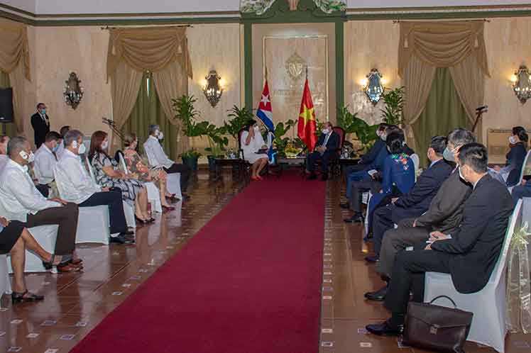 El encuentro ocurre en el contexto de la visita a la nación caribeña del presidente vietnamita, Nguyen Xuan Phuc. (Tomado de PL)