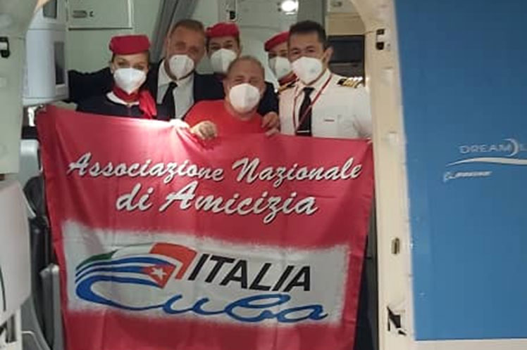 Junto con el primero de varios envíos previstos, viajó el músico cubano Pepe López, autor de la canción ‘Por un abrazo’ a la cual debe su nombre la iniciativa promovida por la Anaic con la Empresa de Grabaciones y Ediciones Musicales (Egrem) y la colaboración de la aerolínea Neos, la Asociación Recreativa y Cultural Italiana (Arci) y Timbalaye.