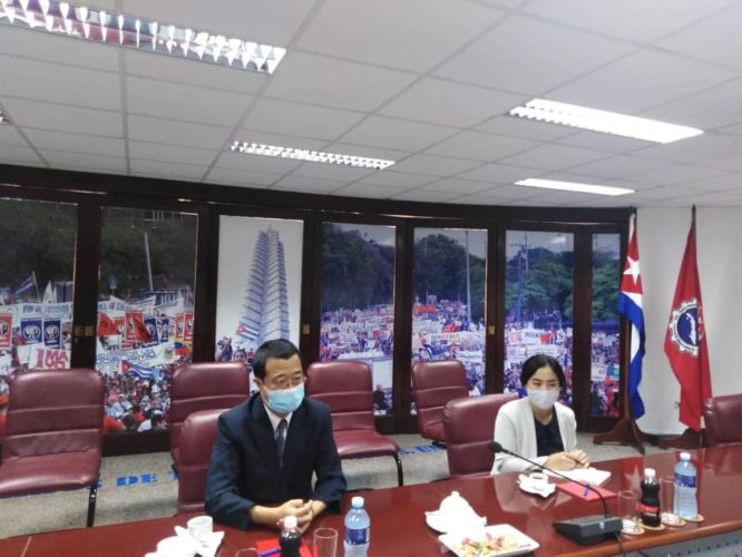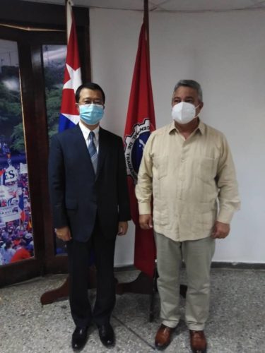 El Excmo. Sr. Hirata Kenji, Embajador de Japón en Cuba y la Srta. Aiko Miyazaki, Segunda Secretaria, fueron recibidos por Ulises Guilarte de Nacimiento, miembro del Buró Político del Comité Central del Partido y Secretario General de la Central de Trabajadores de Cuba, e Ismael Drullet, miembro del Secretariado de la CTC Nacional que atiende Relaciones Internacionales.