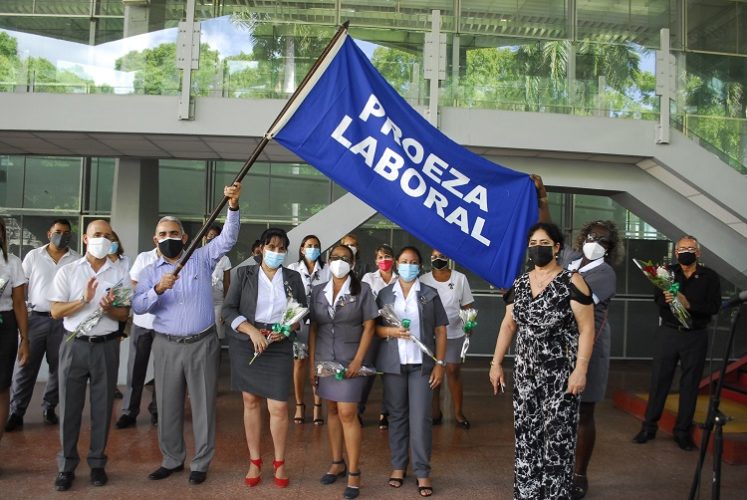 [image_carousel source=»media: 287073,287074″ slides_style=»photo» controls_style=»light» crop=»5:4″ columns=»2″ captions=»yes» dots=»no» link=»image» autoplay=»2″ image_size=»medium»]En este emblemático lugar aledaño al Museo de la Revolución, una representación del personal del Banco Metropolitano y sus sucursales en La Habana recibieron la Bandera Proeza Laboral, que confiere la CTC a los colectivos laborales por el cumplimiento de todas las tareas asignadas y en complejas condiciones.