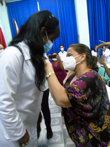 A 25 médicos y enfermeros del hospital pediátrico y universitario Paquito Gonzalez Cueto, de la provincia de Cienfuegos, integrantes del Contingente Internacional de Médicos Especializados en Situaciones de Desastres y Graves Epidemias Henry Reeve, les otorgaron la Medalla Hazaña Laboral.