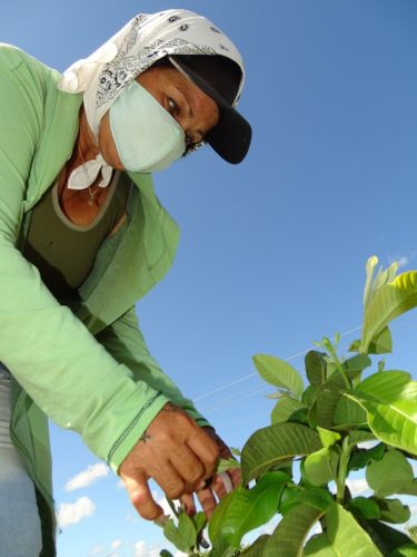 Como si hubiera salido de un pasaje del cuento infantil de Caperucita, pero no roja, viste las tonalidades de los retoños y lleva una capucha de igual color; en medio del campo recién sembrado, donde se divisa hasta el infinito, pienso, siento que no teme a un lobo feroz y está segura de que dentro de un par de años la plantación se cubrirá de guayabas gracias a los cuidados de un colectivo que la tiene como jefa.