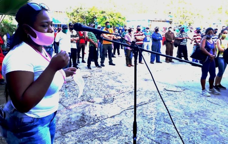 La voz juvenil de Yunior Santos Pupo también se alzó fuerte y clara en la plaza: “El colectivo laboral de Metunas se ha reunido hoy aquí para reafirmarle a la máxima dirección del país que entre esa masa de revolucionario estamos nosotros”, enfatizó.