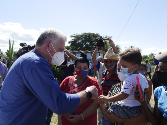 Díaz-Canel hizo referencia a la seguridad que las vacunas han conferido a los cubanos. Esos productos hechos en suelo propio, y con talento propio, «nos han permito controlar esta pandemia que nos ha tenido durante más de un año y medio en una situación muy compleja, en que hemos tenido que lamentar pérdidas humanas», y también atender a personas que enfermaron del nuevo coronavirus, dijo.