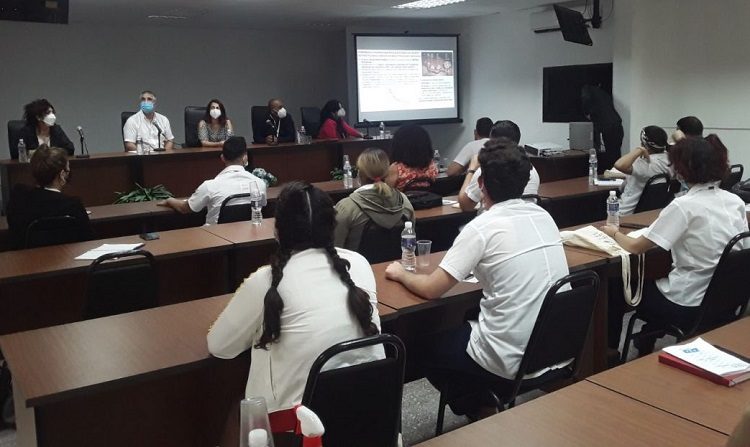 Durante el encuentro estuvieron presentes, además, las doctoras en Ciencias Fidela Reyes Obediente, jefa del Departamento de Trabajo Educativo y Extensión Universitaria del MINSAP, y Mairim Lago Queija, rectora de la Universidad de Ciencias Médicas de La Habana, así como Yosmel Duany Álvarez, miembro del Buró Nacional de la Unión de Jóvenes Comunistas.