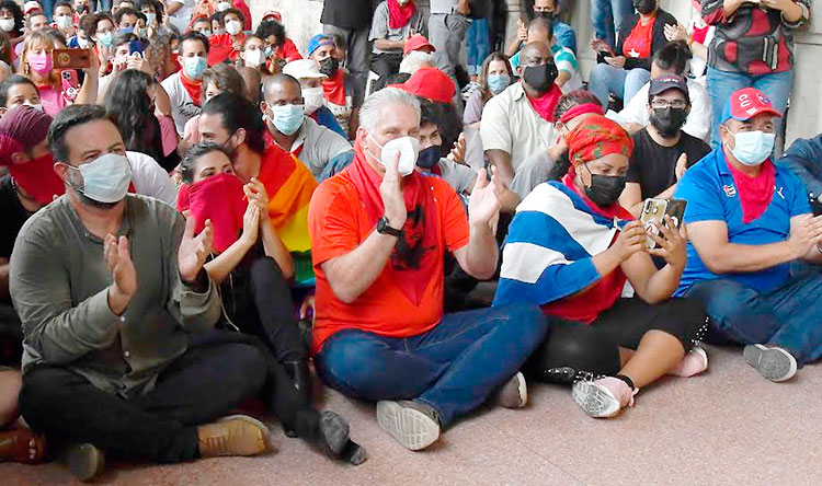El presidente de Cuba, Miguel Díaz-Canel, resaltó hoy la iniciativa Sentada de los Pañuelos Rojos, que tiene lugar en el Parque Central de esta capital, con la participación de jóvenes y representantes de diversos sectores.