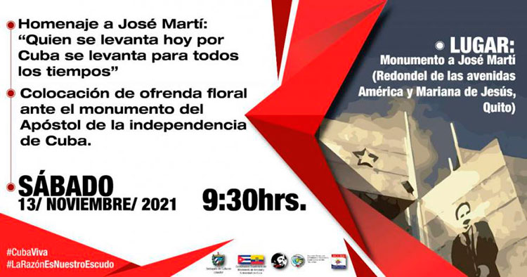Desde Manabí, tierra ardiente y levantiscas, cuna del General José Eloy Alfaro Delgado, amigo y hermano del Prócer cubano José Martí, enviamos a las organizaciones políticas, sindicales, sociales, a los CDR, a la CTC, al ICAP y al pueblo heroico y digno de Cuba nuestro fraternal, clasista, de hermandad y de solidaridad, ratificando el legado del General José Eloy Alfaro Delgado.