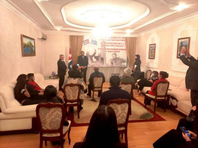 Estudiantes de la Universidad Internacional de Astaná expresaron su solidaridad con la justa lucha del pueblo cubano contra el bloqueo y las agresiones de EE.UU. durante una conferencia ofrecida a profesores y alumnos de esa Alta Casa de Estudios por el embajador de Cuba en Kazajstán, Emilio Pevida Pupo, que les permitió acercarse a la historia y actualidad cubanas y conocer mejor los objetivos y la esencia misma de la hostil política de sucesivas administraciones estadounidenses hacia la isla caribeña.