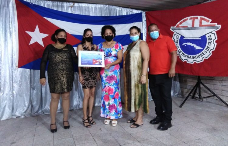Yinet Peña Batista, secretaria del Buró provincial del Sindicato de la Administración Pública, recibió, en nombre de los más de 12 mil trabajadores estatales y no estatales; con presencia en 38 organismos de la economía global, sectores judicial y bancario, servicios comunales y las organizaciones políticas y de masas.