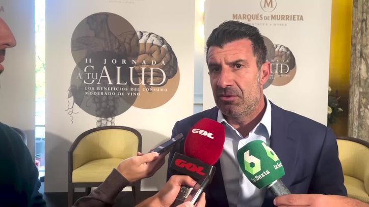 Luis Figo fue uno de los ponentes de la segunda jornada organizadas por la bodega Marqués de Murrieta ‘A tu salud’ y que trataba sobre el beneficio del consumo moderado del vino. Estuvo acompañado por los doctores Marta Garay, Ramón Estruch y Miguel A. Martínez-González.