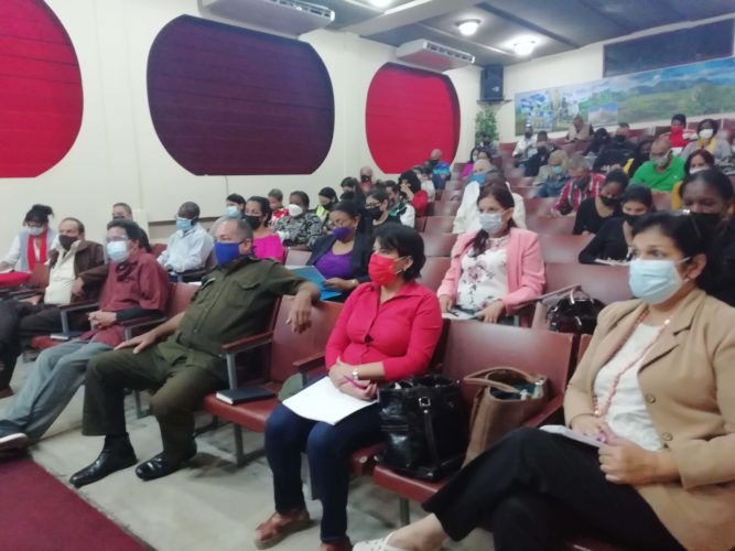 Eumelín González Sánchez, integrante del Buró Provincial del Partido, se refirió a la necesidad de superación, vincularse más con la base que es donde se encuentran los trabajadores, protagonistas del desarrollo económico que requiere el país y felicitó al movimiento sindical de la provincia por su aporte al enfrentamiento de la COVID-19 y al programa de autoabastecimiento alimentario con jornadas voluntarias.