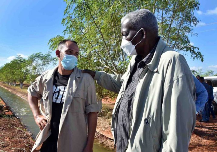 Alejandro Orta Álvarez cumplió 25 años este viernes. Para felicitarlo, no solo por su cumpleaños, sino también por el trabajo realizado en la producción de alimentos, visitó Esteban Lazo su finca Rinconada, ubicada en el municipio de Güines.
