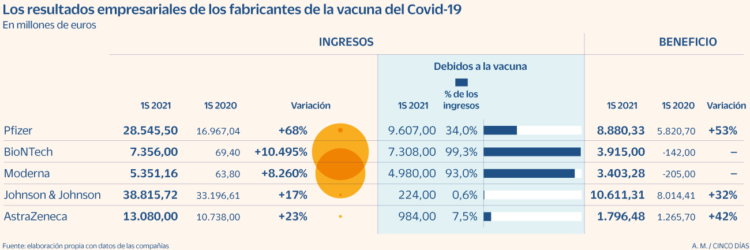 Precisamente las farmacéuticas resultaron ser las grandes triunfadoras. Pfizer BioNTech, por ejemplo, acaba de reportar 10.6 mil millones de dólares de ganancias, solo en el tercer trimestre de este año. En igual lapso de tiempo, Moderna obtuvo 6.1 mil millones de dólares, y Astrazeneca, mil millones de dólares.