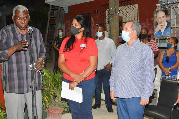 Rodeado por los vecinos, el dirigente expresó la compleja situación en que se desenvuelven los principales asuntos económicos y sociales en la nación, recrudecida por más de 200 medidas aplicadas por la administración de Estados Unidos para hacer fenecer la Revolución cubana.