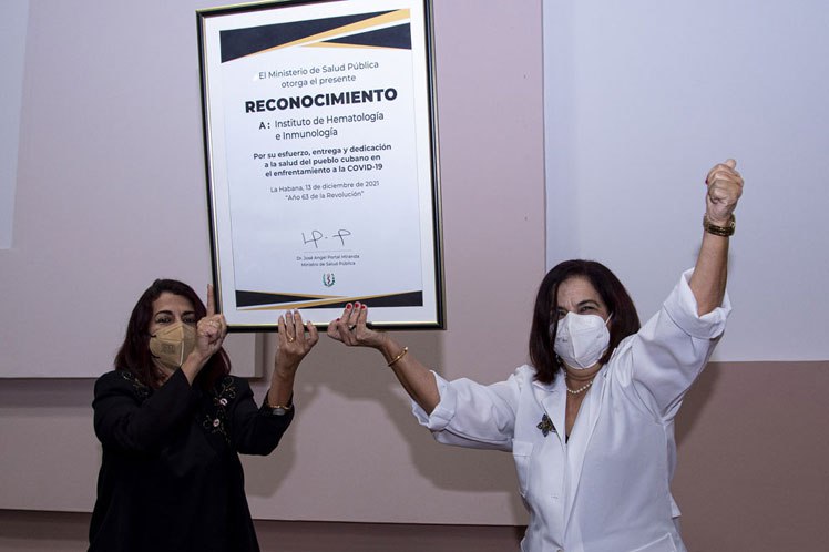 El colectivo del Instituto de Hematología e Inmunología recibió un Reconocimiento Especial por su consagración y aportes a la salud pública cubana, y en especial, al enfrentamiento a la COVID-19.