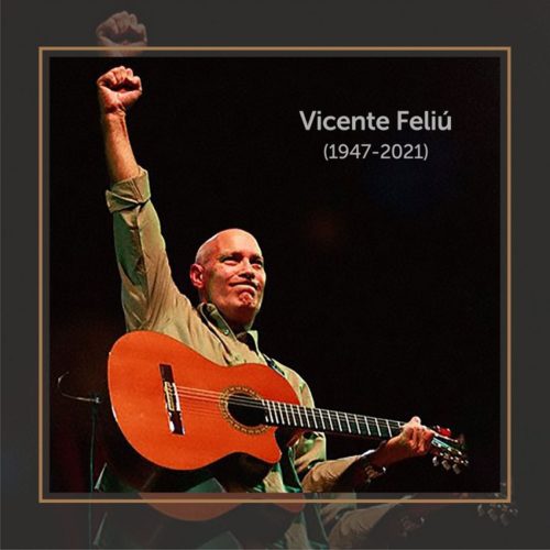 Muy triste golpe en el alma de la Patria, muerte repentina de Vicente Feliu. Tocaba acordes de «La bayamesa» cuando falló su corazón. Que su emblemático «Créeme», sus Guevarianas, sus Auroras y su honda lealtad a la #Revolución, nos iluminen siempre. Adiós, querido amigo. pic.twitter.com/UB1VPvaHzV