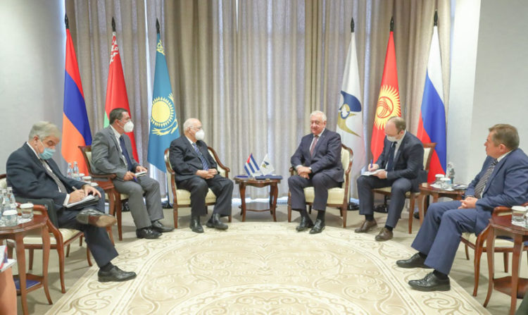 En el marco del cordial encuentro, ambas partes destacaron los resultados de la II Sesión Conjunta para la Colaboración entre la Comisión Económica Euroasiática y Cuba, y reconocieron que las relaciones de cooperación entre ambas permitirán una interacción más efectiva de la isla caribeña y los Estados miembros de la Unión, con quienes nos unen tradicionales e históricos lazos de amistad.
