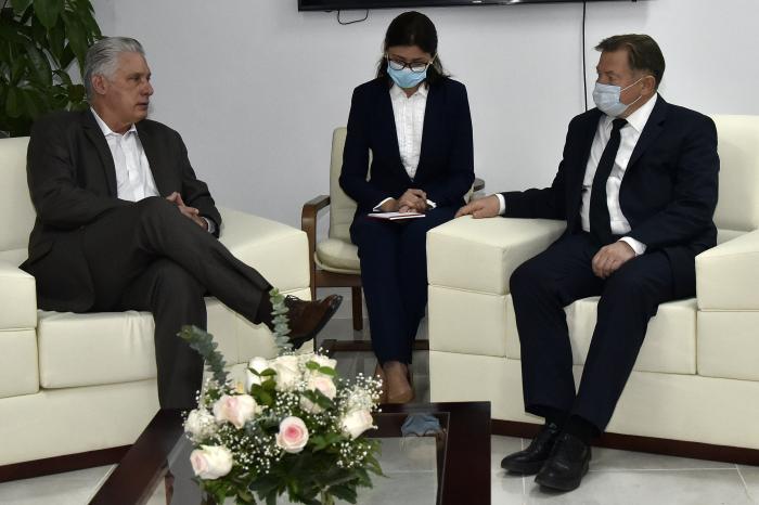 El Presidente de la República de Cuba, Miguel Díaz-Canel Bermúdez, recibió en la mañana de este viernes al Sr. Serguei Gláziev, ministro de Integración y Macroeconomía de la Comisión Económica Euroasiática, quien realiza una visita de trabajo a nuestro país.
