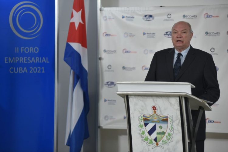 El titular realizó una actualización sobre las oportunidades y los desafíos de la inversión extranjera en la isla y abordó el impacto económico del bloqueo que impone Estados Unidos a la nación antillana y su alcance extraterritorial.