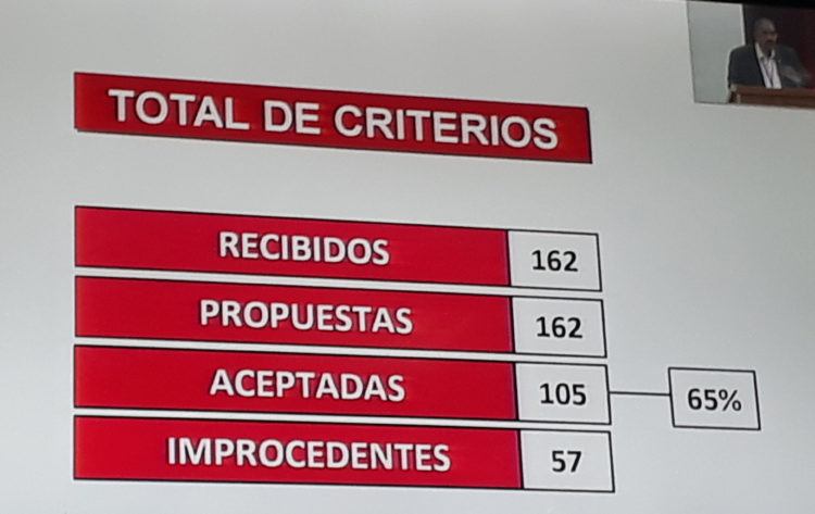 Más de 270 planteamientos se recibieron sobre el proyecto, incluyendo más de 90 de los diputados, de los cuales se aceptó el 90%; mientras que de los organismos y universidades se aceptaron 11 modificaciones y más de 40 cambios fueron directamente planteados por la población.