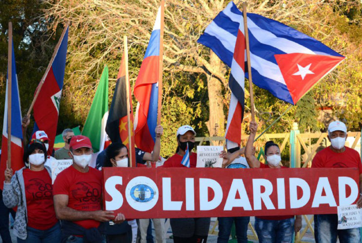 Se rindió homenaje y agradecimiento en primer lugar a los trabajadores de ese sector por su dedicación y sacrificios en el enfrentamiento de la pandemia, mientras que se cerró la marcha con los del Hospital Militar, simbolismo de cuanto protagonizaron por largos meses la lucha por la vida.