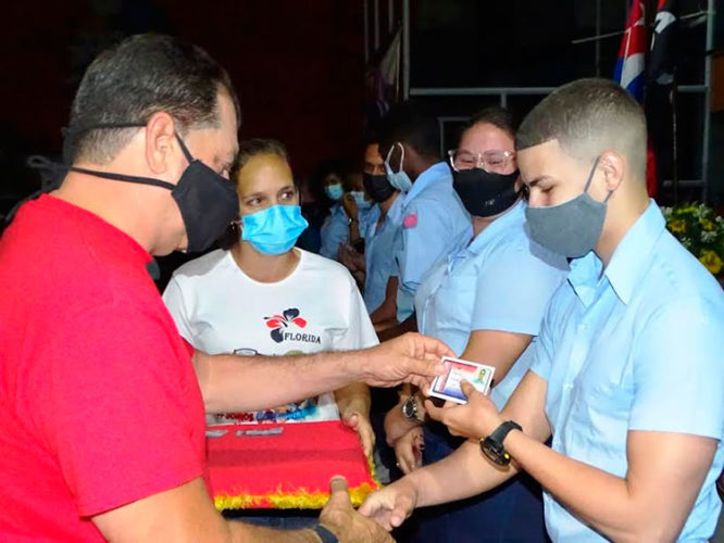 Entre canciones, bailes y declamaciones algunos jóvenes estudiantes y trabajadores recibieron el carné que los acredita como militantes de la Unión de Jóvenes Comunistas (UJC) y se reafirmó la continuidad del legado revolucionario.