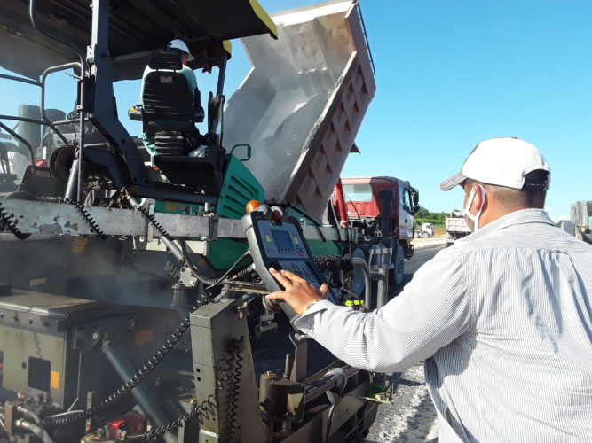 Debemos cubrir con asfalto la capa de nivelación necesaria hasta proceder con la última de rodamiento, y para ello contamos con la fuerza técnica calificada, no menos de 1000 toneladas de este producto asfáltico, unos 15 camiones a nuestra disposición, además de tecnología de punta que incluye cilindros y otros equipos pesados, explicó Luis Alberto Viltres Soto, jefe de la brigada de la Planta de Asfalto.