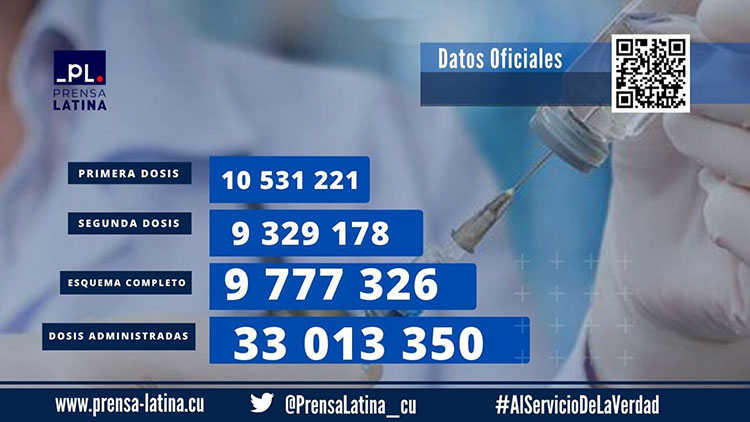 Datos del Minsap, refieren que al cierre del 17 de enero se acumulan en el país 33 millones 13 350 dosis administradas con Soberana Plus, Soberana 02 y Abdala.