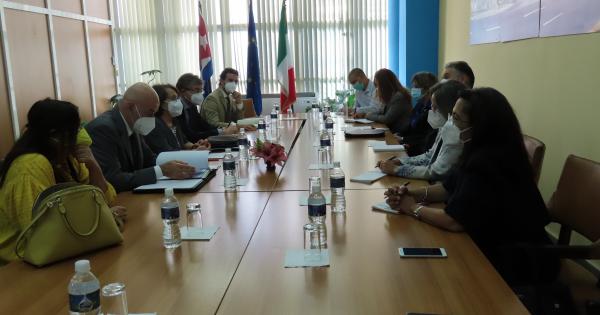 El titular de economía comentó a Sereni, y a funcionarios de la Embajada de Italia en Cuba, presentes en el encuentro, sobre las acciones para el desarrollo territorial que impulsa la Mayor de las Antillas.