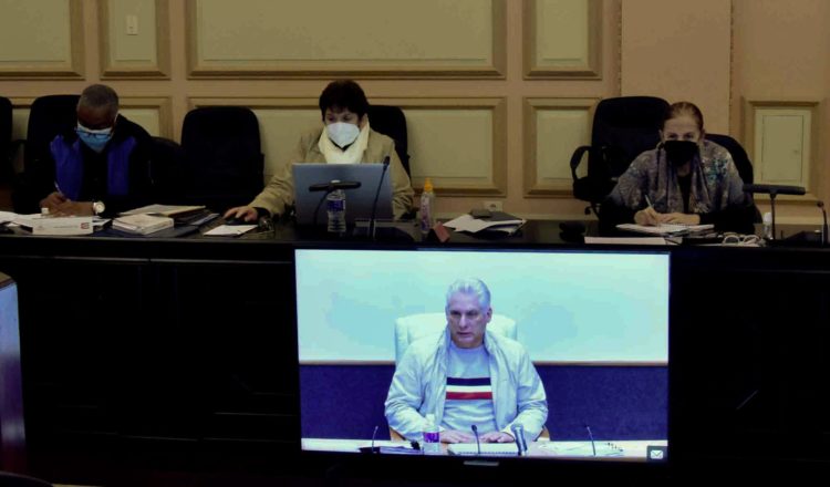 Mediante videoconferencia con los territorios, y desde el Capitolio, sede de la Asamblea Nacional, y el Palacio de la Revolución, en la tarde de este lunes se realizó el intercambio, que es parte del sistema de trabajo de la dirección del país para compartir mensualmente informaciones y debatir temas urgentes y estratégicos para el desarrollo nacional y local.