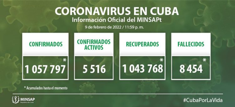 Del millón 057 mil 797 de pacientes diagnosticados con la enfermedad, se mantienen ingresados 5 mil 516, de ellos 5 mil 468 con evolución clínica estable. Se acumulan 8 mil 454 fallecidos (4 en el día), letalidad de 0,80% vs 1,44%% en el mundo y 1,8% en Las Américas, dos evacuados y 57 retornados a sus países. En el día hubo 1 mil 495 altas, se acumulan 1 millón 043 mil 768 pacientes recuperados (98,7%). Se atienden en las terapias intensivas 48 pacientes confirmados de ellos 20 críticos y 28 graves.