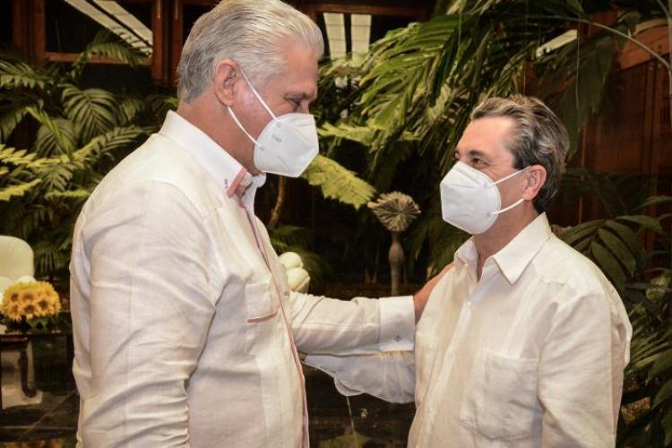 Pdte @DiazCanelB recibió a José Luis Centella Gómez, presidente de @elpce, a quien expresó profundo agradecimiento por la firme posición de su formación política de condena al brutal bloqueo de EEUU contra nuestro pueblo y la solidaridad en defensa de la Revolución Cubana. pic.twitter.com/GO4SxTQXug