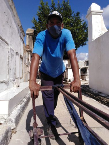 Todos los días a la seis y media de la mañana Gerardo llega. Revisa; da el parte y luego conversa con los 17 sepultureros que lidera. “Aquí, añade, además de enterrar, exhumar o inhumar restos, cuando es necesario damos mantenimiento, cambiamos tapas e incluso apoyamos a la Oficina del Historiador de la Ciudad, que está restaurando algunos espacios.