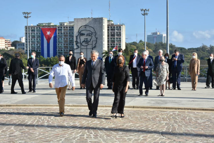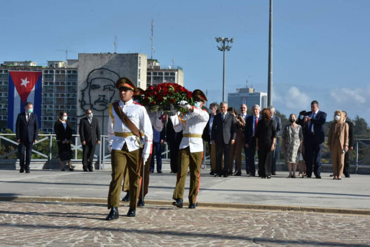 En compañía de Ana María Mari Machado, vicepresidenta de la Asamblea Nacional del Poder Popular y del Consejo de Estado, el distinguido visitante depositó una ofrenda floral en el Memorial José Martí para rendir tributo al más universal de los cubanos.