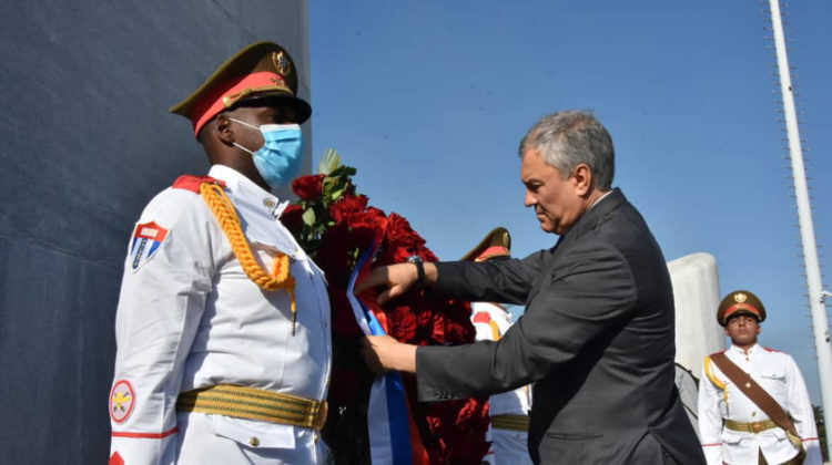 Además este miércoles, el presidente de la Duma Estatal y la delegación que lo acompaña colocaron una ofrenda floral en el Mausoleo al Soldado Internacionalista Soviético y recorrieron el Centro de Estudios Fidel Castro Ruz.