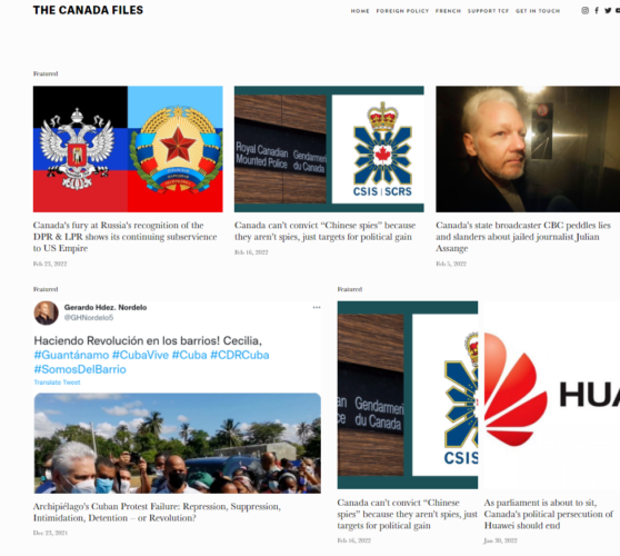 The Canada Files, por su parte, se describe como “una organización de noticias orgullosamente socialista y antiimperialista”, que evalúa críticamente la política exterior canadiense y el complejo militar-industrial. Su equipo incluye al editor en jefe Aidan Jonah, al editor asociado Daniel Xie y al nuevo editor-colaborador, el galardonado escritor y periodista Arnold August.