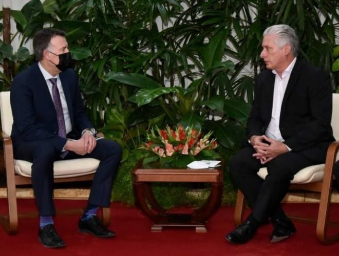 El Primer Secretario del Comité Central del Partido Comunista y Presidente de la República de Cuba, Miguel Díaz-Canel Bermúdez, sostuvo un encuentro en la tarde de este jueves con Leon Binedell, presidente de Sherritt International, prestigiosa empresa canadiense del sector de la minería y el petróleo.