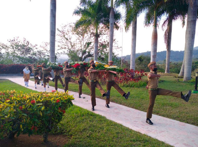 Posterior a la ceremonia de guardia de honor, a cargo de los estudiantes de la Escuela Militar Camilo Cienfuegos de Contramaestre, la presidencia dedicó flores sueltas a Almeida y a los combatientes del Tercer Frente, creado el 6 de marzo de 1958.