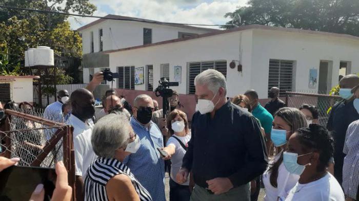El Jefe de Estado le preguntó si los pobladores han aceptado con agrado lo hecho en el Emboque; a lo que ella respondió que sí, que ya las personas se están sentando con gusto en el muro frente al mar. Díaz-Canel enfatizó entonces que lo esencial está en el cambio de actitud, en la participación de la gente, en la preservación de cuanto se haga, y en el sentido de pertenencia.