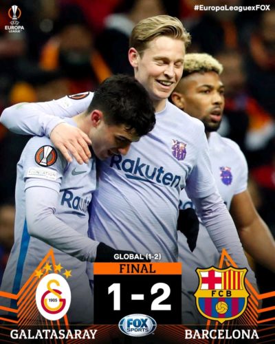 Europa League: El Barcelona remontó al Galatasaray en Turquía con goles de Pedri y Aubameyang. Mientras, el Atalanta venció 1-0 al Leverkusen, para clasificarse con un 4-2 global. Asimismo, Braga avanzó tras empatar a 1 con Mónaco, con 3-1 general.