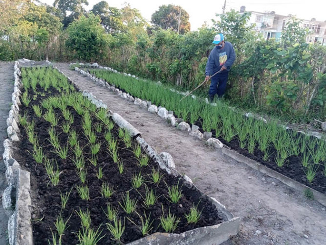 Según Elio Ruiz García, encargado de este frente, la escuela tiene tres organopónicos, dos de especies, vegetales y viandas y uno de plantas medicinales. “Hace un mes me incorporé a la tarea y ya tengo sembrado ajo porro, cilantro, culantro, quimbombó, pepino y plátano, pero seguimos cultivando para ampliar las ofertas.
