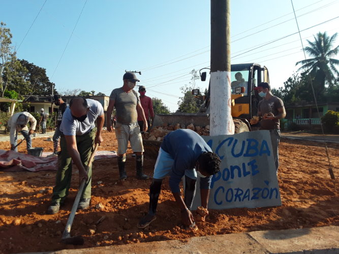 El empleo de adocretos, uno de los renglones de la producción local de materiales de la construcción, distingue la cimentación de esta zona, en la cual también se trabaja en un kiosco de Cimex, el abasto de agua, la reparación de la bodega, en tanto se brindan algunas alternativas para recuperar, poco a poco, el deteriorado fondo habitacional.