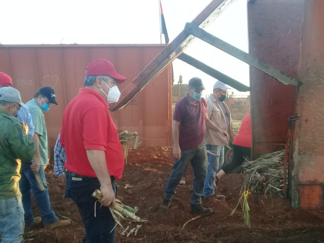 Junto a los miembros del Buró Político Gladys Martínez Verdecia y Ulises Guilarte de Nacimiento, secretaria del Partido en la provincia y líder de la clase obrera, respectivamente, en la UBPC Rigoberto Corcho se unieron centenas de manos, para dejar sembradas unas diez hectáreas de la gramínea, entre las más de 100 previstas para la actual campaña.