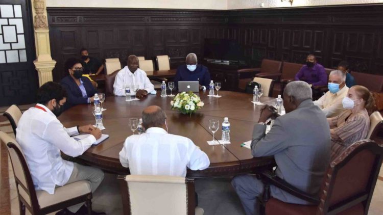 En el fraternal intercambio, Lazo Hernández reconoció la compleja situación económica que atraviesa el país, derivada de los estragos del bloqueo y de la crisis internacional; llamó la atención sobre la guerra comunicacional emprendida contra Cuba, al tiempo que repasó algunas tareas de envergadura como la actualización de la Estrategia Económica y Social, con énfasis en el perfeccionamiento de la empresa estatal socialista, la creación de las micro, pequeñas y medianas empresas privadas y estatales, la aplicación de 63 medidas para dinamizar la agricultura y la implementación de una serie de acciones para contener la inflación.