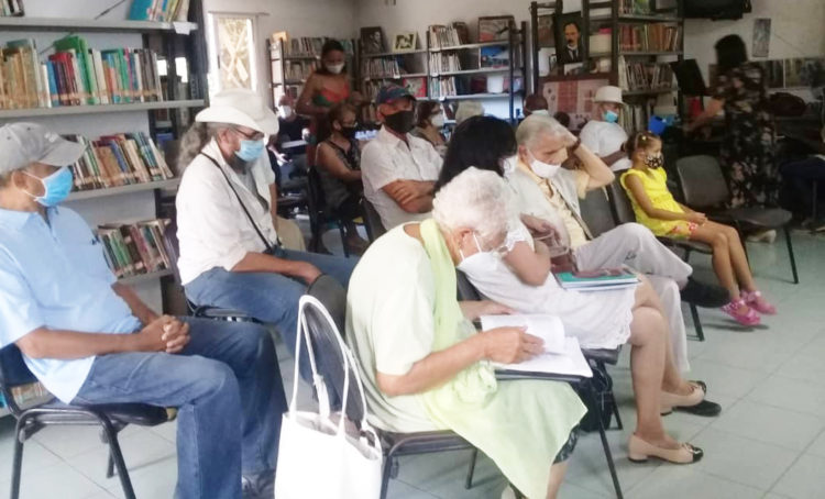 La actual directora de la institución anfitriona, Tanja Aguilar, expuso un merecido y emocionante homenaje a su profesora Dineya Vázquez —allí presente a pesar de sus notables limitaciones de salud—, quien dirigió esta biblioteca durante casi medio siglo, lapso en el cual acompañó ejemplarmente la peña semanal sede del Grupo Ala Décima que por 25 años se realizó en este importante centro cultural del territorio.