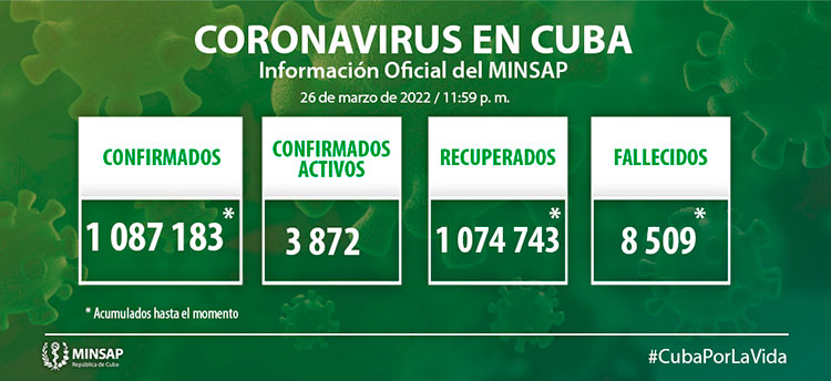 Del millón 087 mil 183 de pacientes diagnosticados con la enfermedad, se mantienen ingresados 3 mil 872, de ellos 3 mil 839 con evolución clínica estable. Se acumulan 8 mil 509 fallecidos (no se reporta ningún fallecido en el día), letalidad de 0,78% vs 1,28% en el mundo y 1,79% en Las Américas; dos evacuados, 57 retornados a sus países, en el día hubo 730 altas, se acumulan 1 millón 074 mil 743 pacientes recuperados (98.9%). Se atienden en las terapias intensivas 33 pacientes confirmados de ellos 6 críticos y 27 graves.