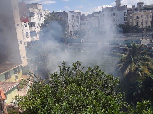 “Fuego en el llamado hueco de K (Vedado, La Habana). Los bomberos llegaron rápido, pero no pudieron impedir que las llamas cruzaran a un techo cercano, que ardió por varios minutos y derritió un tanque plástico de agua. El viento está empujando las cenizas y el humo hacia la calle 23”, escribió en su perfil de Facebook el periodista Javier Ortiz.