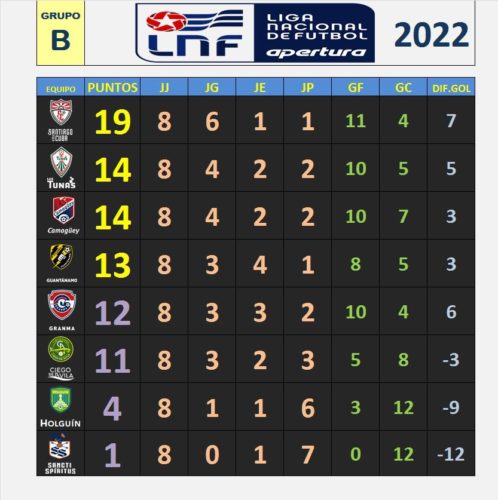 En el grupo B, Holguín encontró la derrota 0-2 ante Santiago de Cuba, gracias a las perforaciones de Cristian Flores y Jorge Villalón, al 23 y al 90+1, respectivamente. Esta pizarra afianzó a los diablos rojos en la punta con la colaboración de sus máximos perseguidores: los miuras de Camagüey y los enérgicos de las Tunas, que pactaron tablas por dianas del agramontino Samuelvis López en el minuto 32 y de Osniel Trutié al 59.