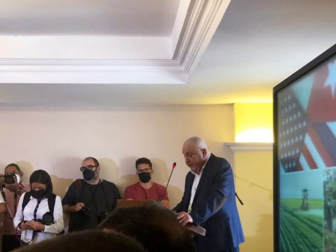 “Solos podemos ir más rápido, pero juntos podemos llegar más lejos. Debemos aprender unos de otros para eliminar los obstáculos de las relaciones bilaterales, los negocios y el comercio. No es momento de estar inactivos y esperar por un cambio de políticas”, afirmó al intervenir en la conferencia, en la cual fue antecedido por Frank Castañeda Santalla, presidente del Grupo Empresarial Agrícola quien reconoció el valor y el interés de la delegación norteamericana al venir a Cuba y agradeció por todos los esfuerzos que hacen por agrietar el crudo bloqueo de Estados Unidos contra Cuba.